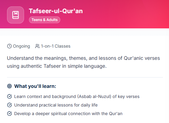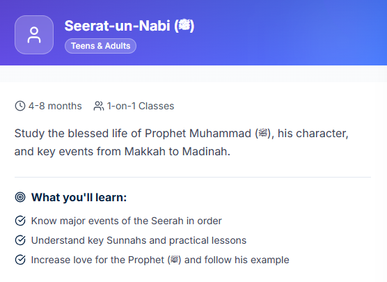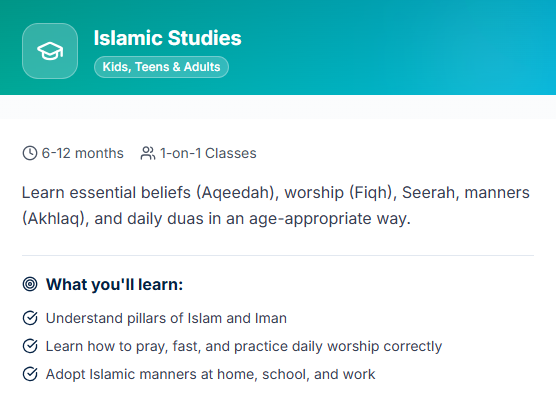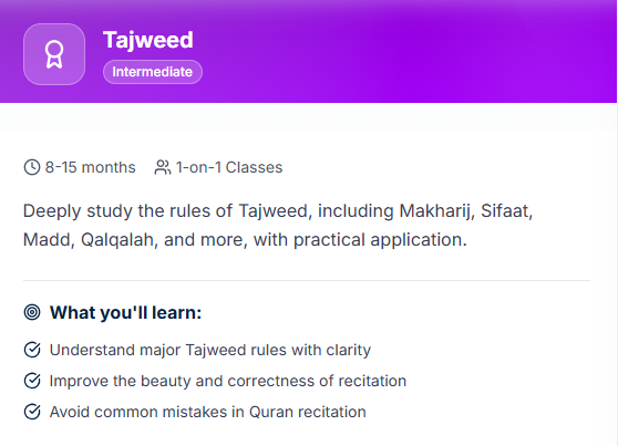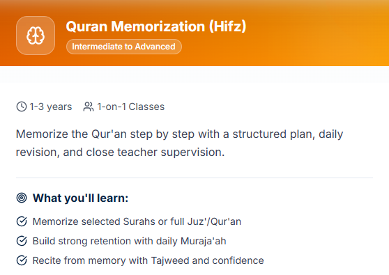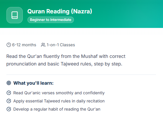 Select the course that matches your level and goals-from basic Qaida to Hifz and Tajweed.